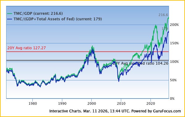 De Amerikaanse beurs is nog steeds stevig overgewaardeerd volgens de Buffett indicator