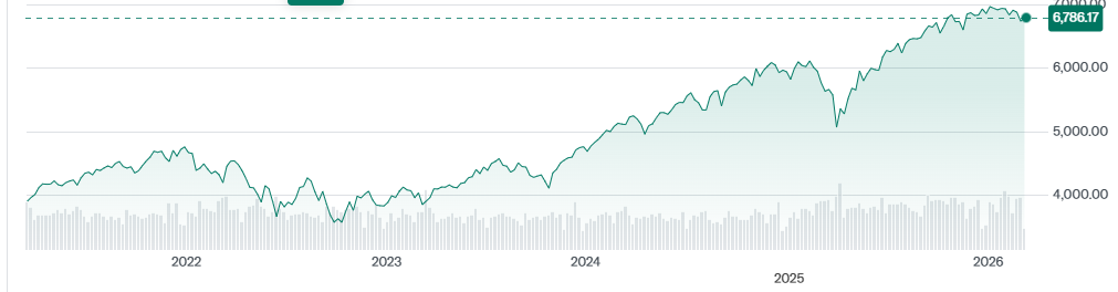 Er is dan ook nog geen sprake van een daling in de S&P500: